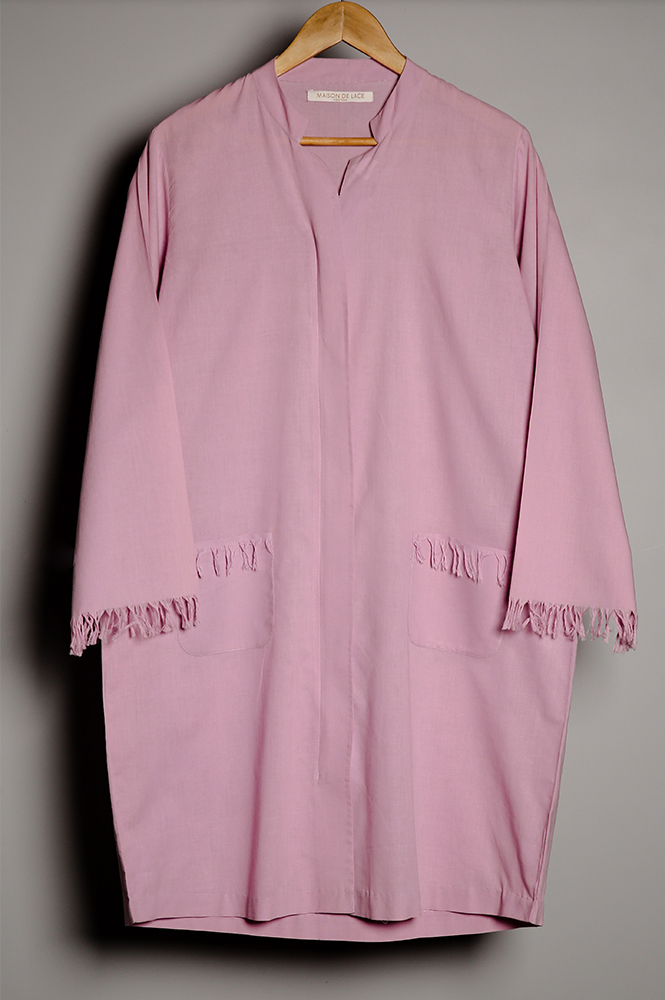 Description: This alluring kurta comes from the softest hues of pink with exclusive side pockets and wholesome raw edge detail on the sleeves.