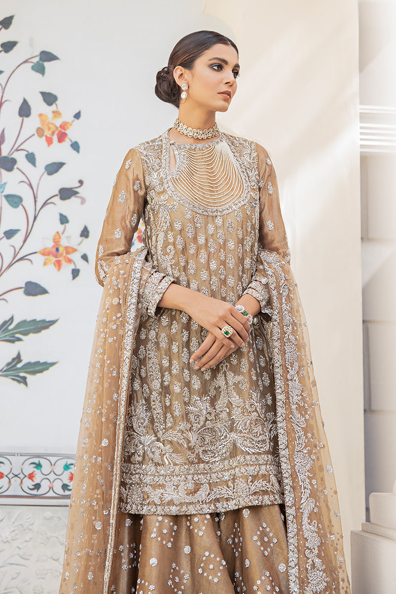 Description: Jahanarra Reflects Creativity That Reinvents The Traditional Aura, Revising The Beauty And Sophistication Of Delicately Hand-Embellished Bridal Attire. A Canvas Of Floral Patterns And Elaborated Embellishments Come Together To Create This Stunning Silk Tissue Kameez. A Graceful Farshi Gharara Flares Out Elegantly From Underneath While A Floral Dream Of An Embellished Dupatta On Silk Tissue Tulle Finishes This Ethereal Look. The Silk Kameez And Gharara Are Skillfully Embellished With Dabka, Nakshi, Pearls Stonework, And Sequins.